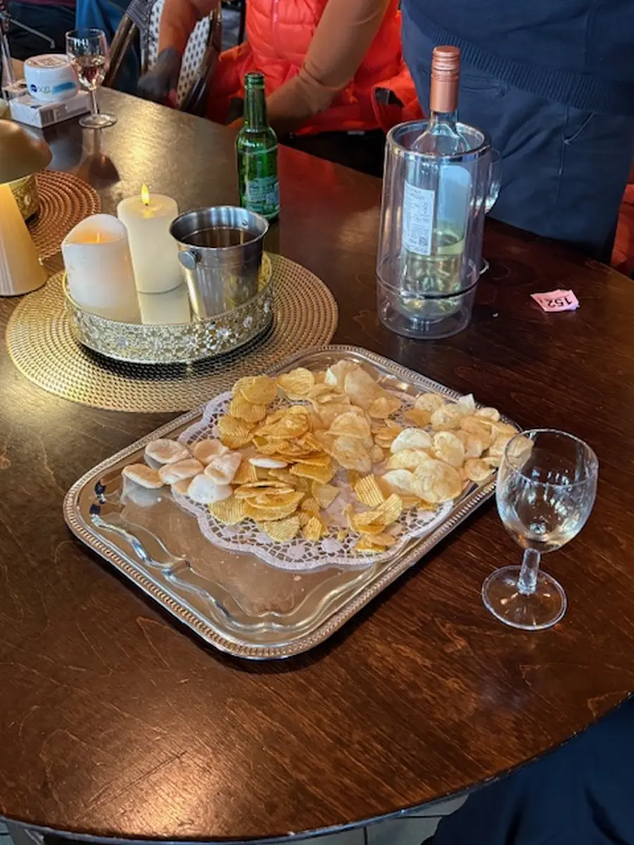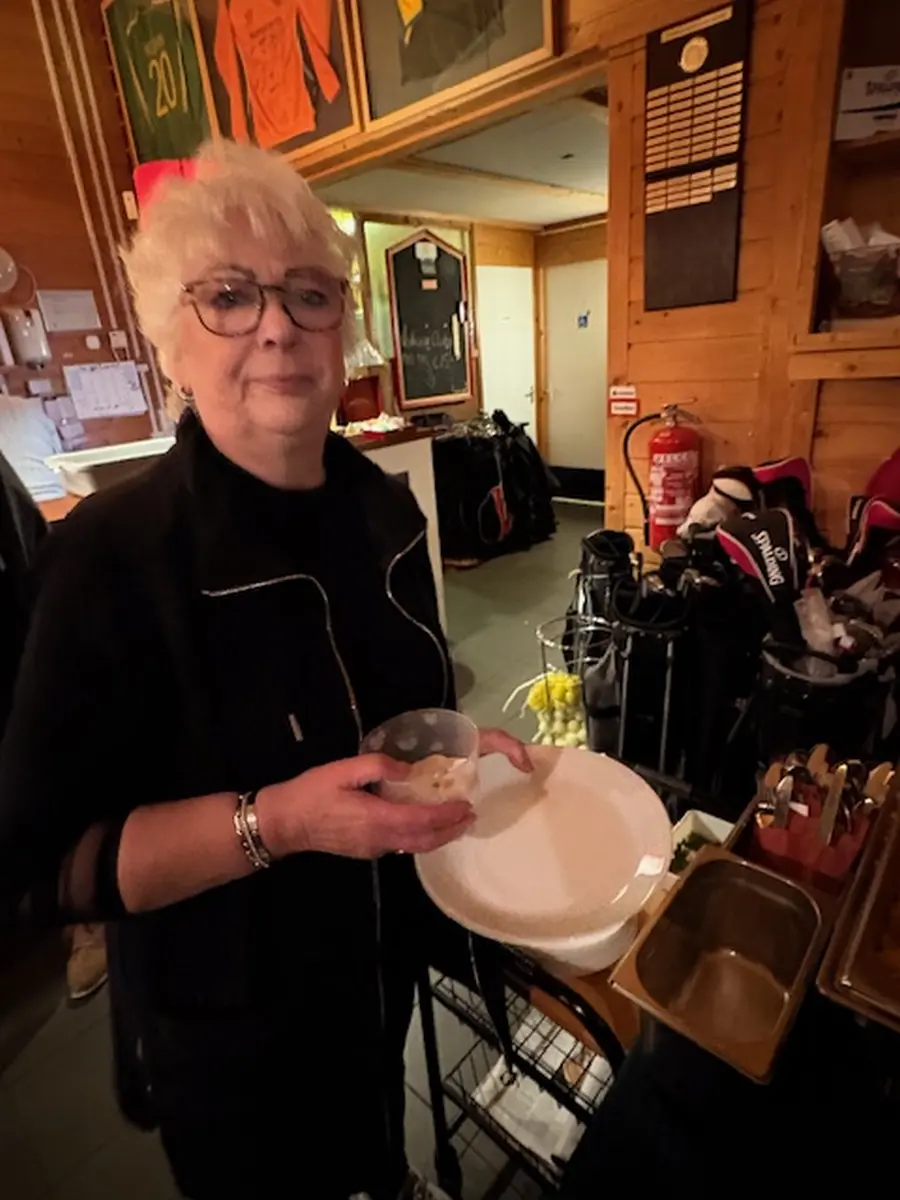 Ook de assistentie van Linda bleef niet onopgemerkt. Bij binnenkomst kregen wij al met haar te maken voor de aanmelding, uitreiking van buttons voor het eten en in de voorbereiding met de samenstelling van het menu.