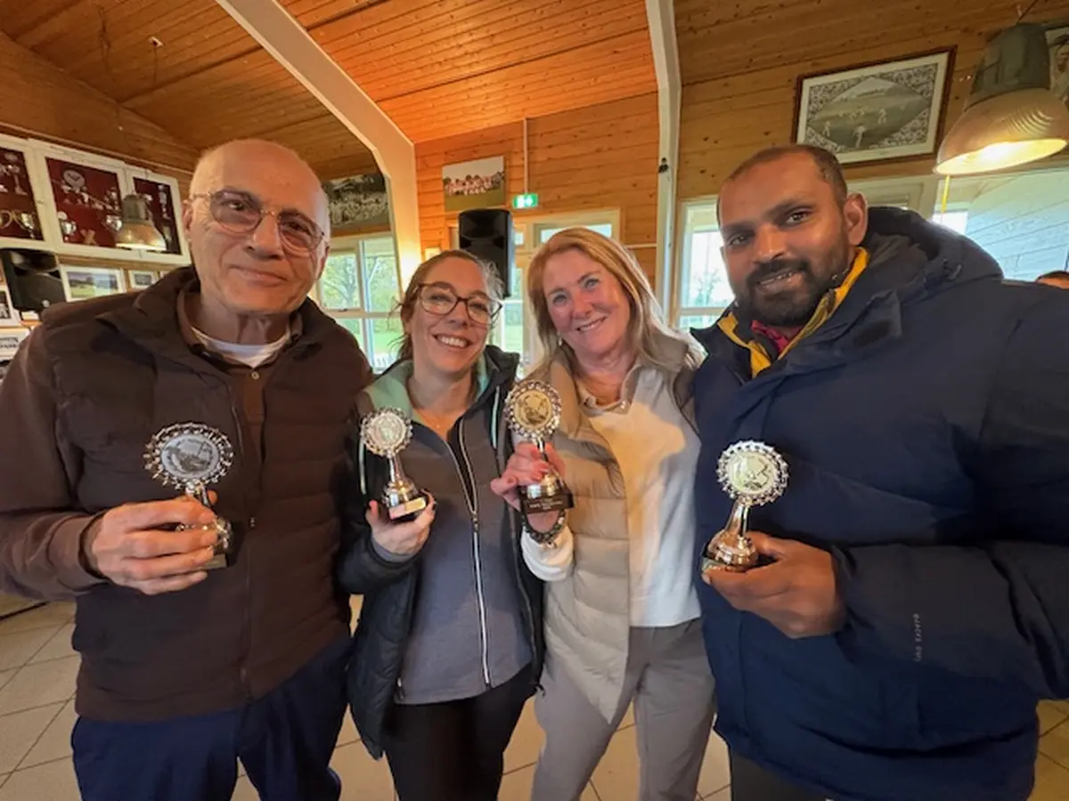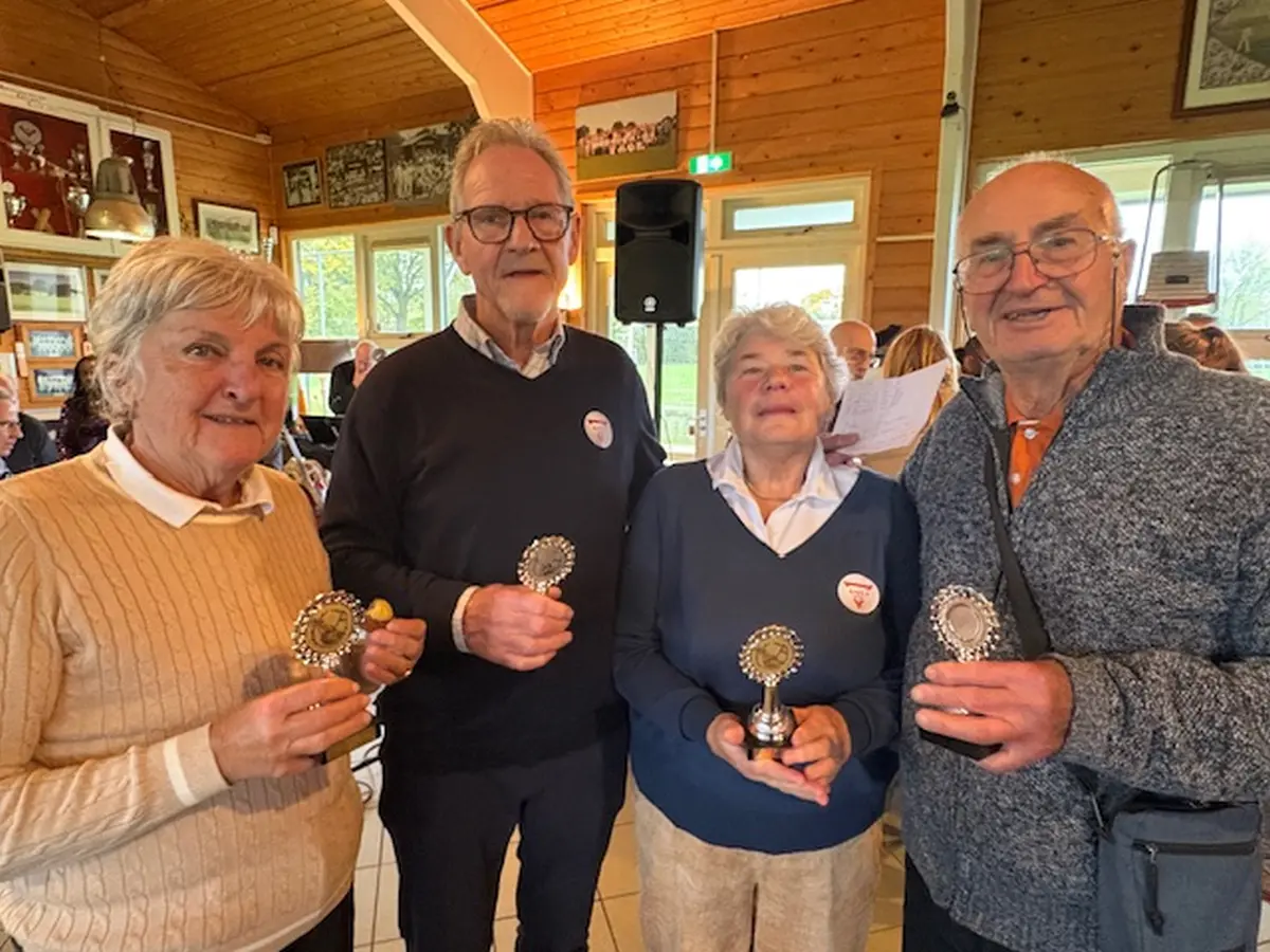 Ook hier werd de eerste prijs gedeeld door twee koppels met 30 slagen over 9 holes.