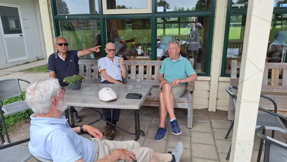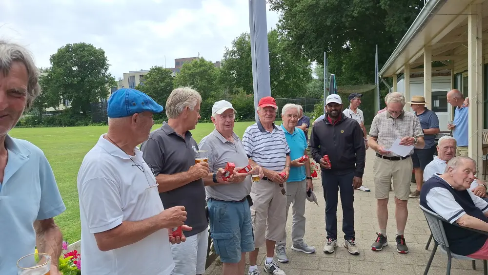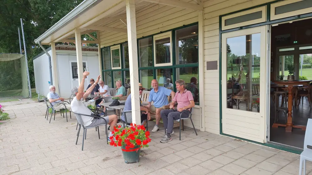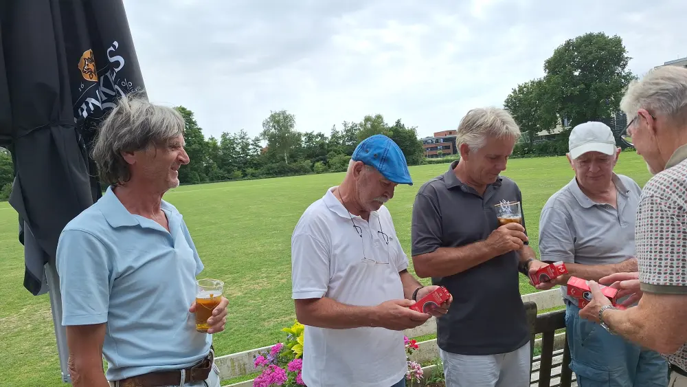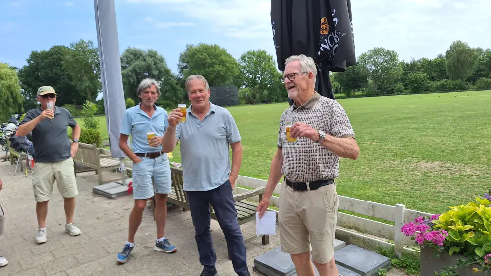 Op naar de baan om de 35 spelers aan het werk te zetten, na de indeling ging men aan de slag om na 3 gelopen holes terug te komen en aan te vallen op de haring en korenwijn.