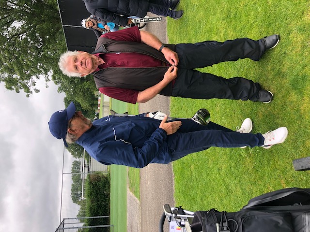 Ja, de volgende flight, waren twee oudgedienden, die het tegen elkaar opnamen. Uitgaande van de handicap zou je zeggen een gelijkwaardige partij? Wel als je de uitslag bekijkt +6. Dan was er toch wel een verschil en dat zat niet in