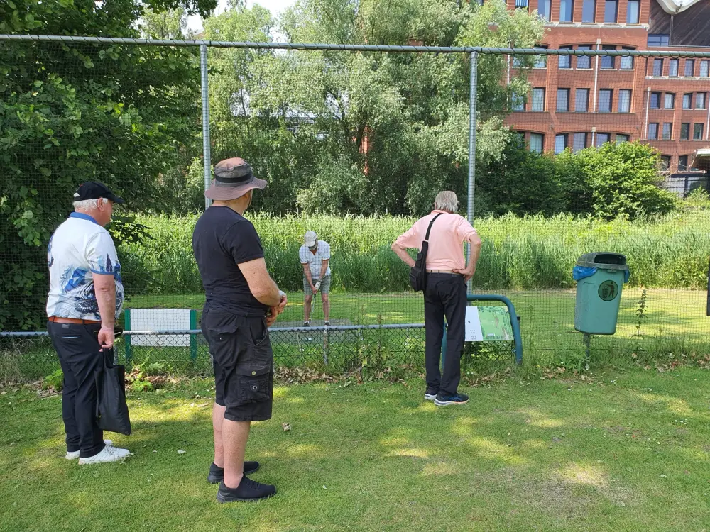 Alle spelers en bezoekers hadden een plaatsje gevonden aan de achterkant van het clubhuis. Het kleine terras en alle banken/stoelen waren gevuld met deze aanwezigen. Eigenlijk wel weinig bij zo'n toernooi finaledag. Misschien volgende keer meer bezoekers en liefst ook meer deelnemers. Een suggestie werd wel gedaan door een bekende onder ons: het prijzengeld verhogen. Geen slecht idee! Maar kan de vereniging dit wel dragen. Moet dan de contributie dan weer niet omhoog?
