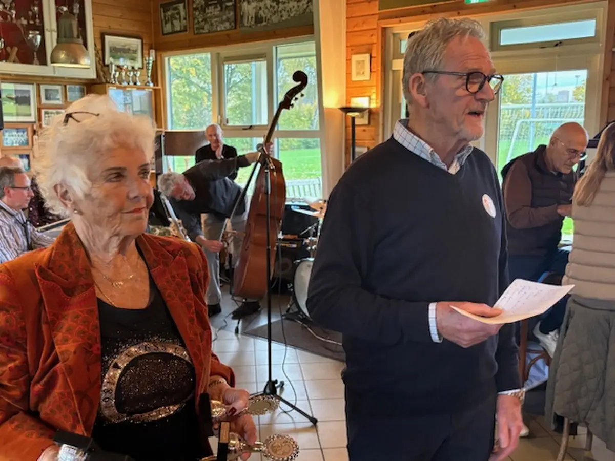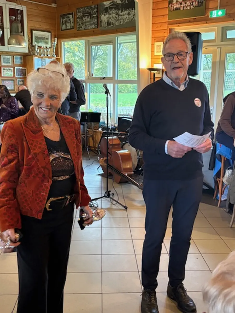 Ook Ger Vink werd in het fictieve zonnetje gezet; zijnde: het oudste clublid aanwezig! Onder een luid applaus werd een originele herinnering aan deze leden overhandigd.