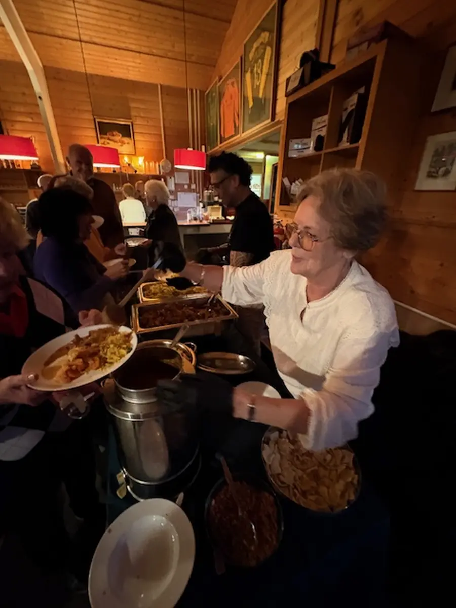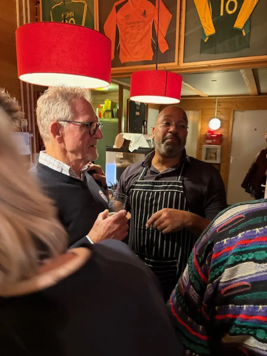 Ook de assistentie van Linda bleef niet onopgemerkt. Bij binnenkomst kregen wij al met haar te maken voor de aanmelding, uitreiking van buttons voor het eten en in de voorbereiding met de samenstelling van het menu.