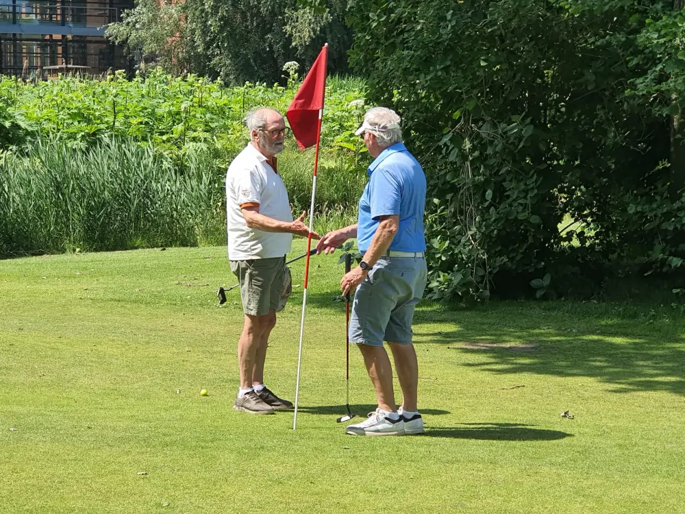 Jan is dit allemaal ontgaan en had zich vastgebeten in de kleine voorsprong, die hij met veel moeite had verkregen en probeerde te verdedigen. En met succes. Hij sloot hole 8 winnend af en daardoor was zijn voorsprong niet meer in te halen door Rob.