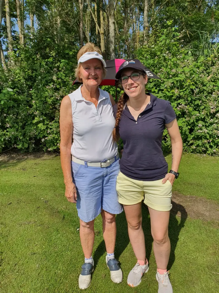 De messen waren geslepen. Beide waren gemotiveerd om dit tot een goed einde te brengen en daarmede de derde plaats in de wacht te slepen. Met 32 slagen over de eerste (polder holes) was Birgit goed op weg. Maar door het aantal slagen welke zij moest prijsgeven aan haar tegenstandster, was het nog maar gelijk bij het begin van de velden holes.