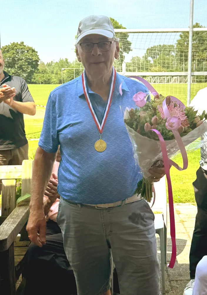Hierna nam onze nieuwe kampioen als een goede huisvader het woord en sprak uit een dankwoord uit voor de organisatie en medespelers. Wij weten, dat Jan soms lang van stof kan zijn en vaak aan het woord is. Deze keer nam hij het woord wederom, echter van stof was hij deze keer niet al te lang. De emoties kwamen hierbij om de hoek kijken, welke hem een beetje in weg zaten. De emoties mogen en moeten er zijn, want je speelt golf toch ook met je hart (niet: hard).