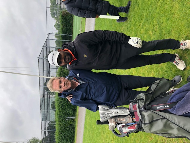 Ja, de volgende flight, waren twee oudgedienden, die het tegen elkaar opnamen. Uitgaande van de handicap zou je zeggen een gelijkwaardige partij? Wel als je de uitslag bekijkt +6. Dan was er toch wel een verschil en dat zat niet in